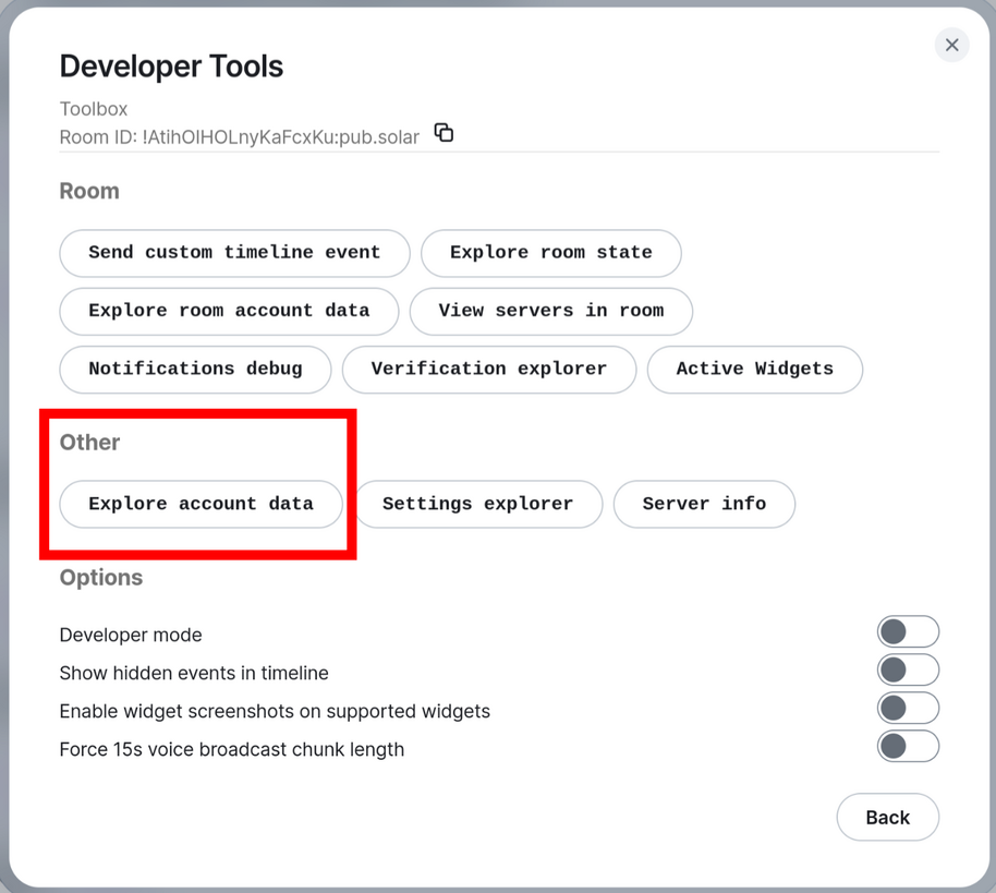 The first time you log in, you'll be asked to save your encryption keys. Make sure to write these down in a secure location! We recommend using a password manager. Matrix messages are end-to-end encrypted, which means that the administrators of pub.solar cannot read their contents. However, if you lose your encryption keys you'll lose access to all previous messages.