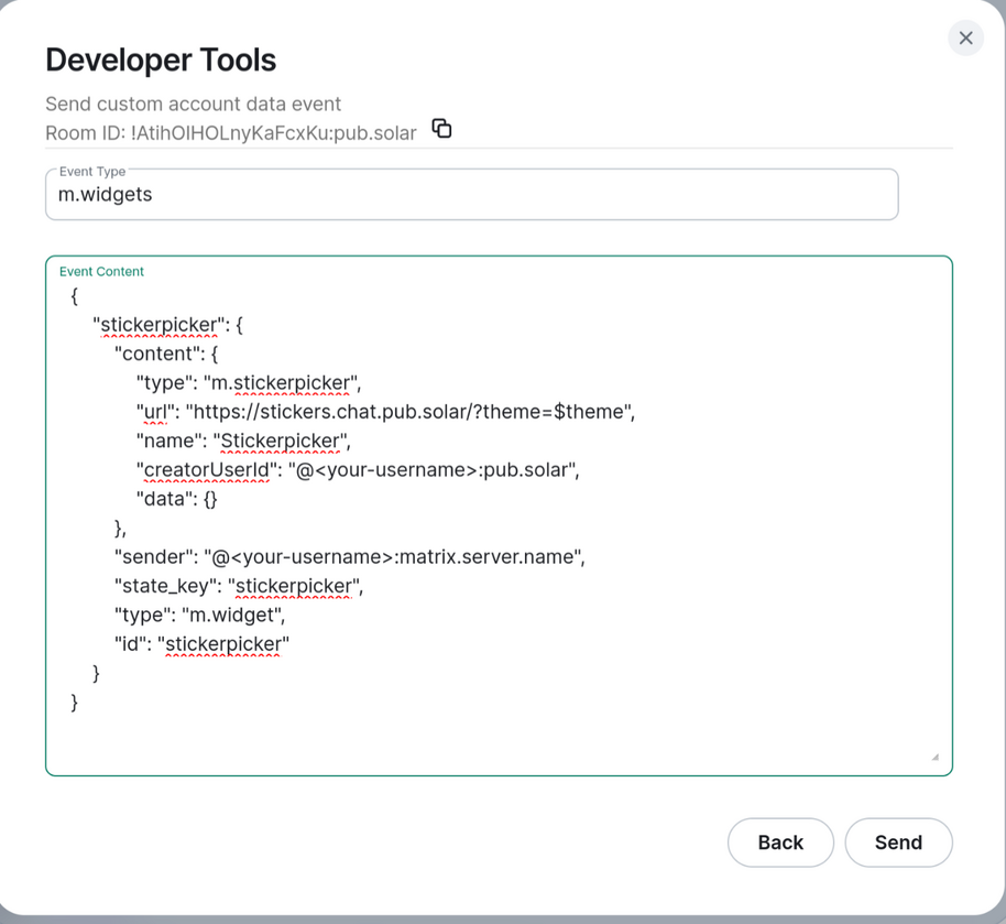 "sender": "@<your-username>:pub.solar",